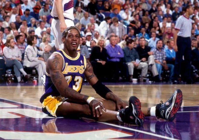 最后,再来说说罗德曼,1998年的公牛队宣告解散之后,罗德曼自然也是成为了清洗的对象,毕竟乔丹的离开,基本就没有球员能够压得住罗德曼偏激的性格。而彼时的罗德曼自己也没有了什么继续生涯的渴望,毕竟他已经拥有了5座总冠军,称得上是NBA最为出色的球员之一。不过,还是有不少球队向他递出了橄榄枝,比如湖人队就在98-99赛季签下了他,而罗德曼无愧篮板王的头衔,在湖人队的23场比赛之中,他场均还有2.1分、11.2个篮板的贡献,但他却和奥尼尔爆发了矛盾,并且在洛杉矶纸醉金迷,所以也是惨遭球队裁员。