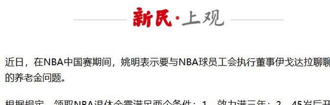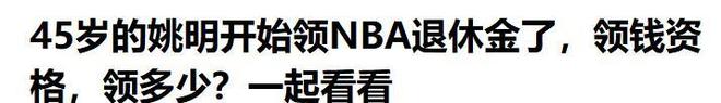 上观新闻:(45岁姚明可以领养老金了!已满足NBA退休金领取条件,每月1838美元2025.10.13)