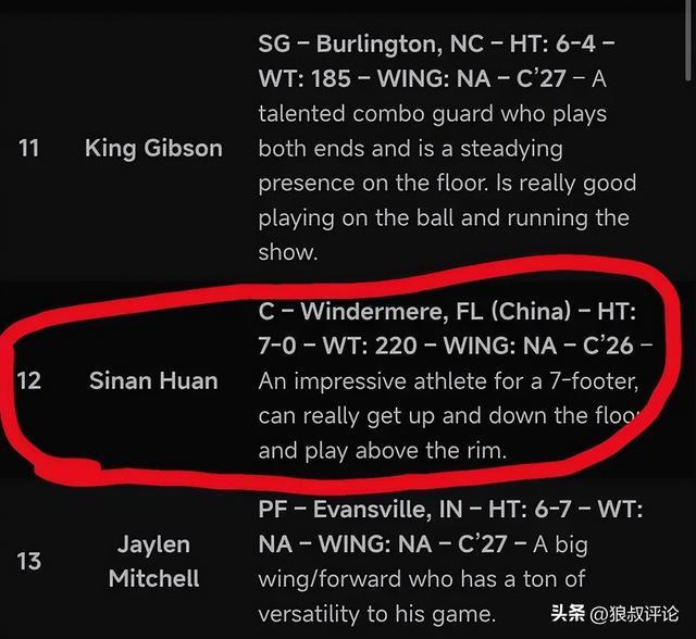 美媒预测2027届NBA首轮秀!曝郇斯楠本周NCAA择校3选1