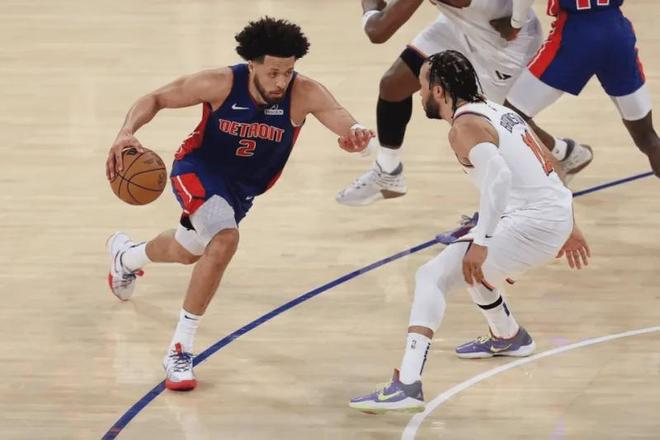 目前纽约和活塞相对联盟大趋势来说并不是快节奏球队,纽约队每48分钟攻防回合数98.2排名全联盟第26,活塞每48分钟攻防100.5回合排名全联盟第16,两队的球风都更强调依靠防守建立优势,活塞更强调防守反击,他们上赛季的场均反击得分18.5分排名全联盟第2,本赛季场均反击得分18.9排名全联盟第4,而球队高质量的快速反击离不开坎宁安的出色视野和精准传球,他年轻时具备橄榄球四分卫潜力,所以在发动快速反击方面,坎宁安要比布伦森更强.