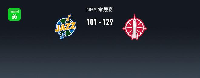 第四节爵士菲利波夫斯基拿下10分,火箭申京拿下8分,最终爵士101-129不敌火箭