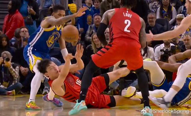 北京时间今日,在NBA常规赛中,波特兰开拓者队在客场对阵金州勇士队。在比赛进行到第四节时,杨瀚森获得出场机会。在一次进攻回合,杨瀚森倒地拼抢,但后脑勺不慎撞到勇士后卫威尔-理