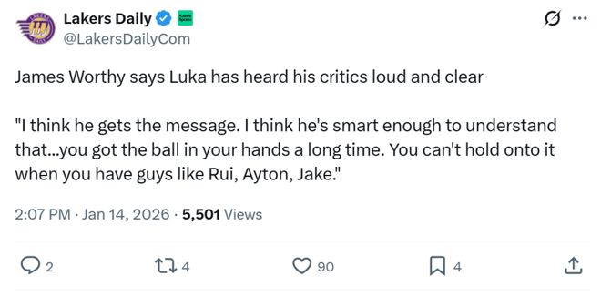 正如赛后湖人名宿沃西所说:“我想他已经明白了外界的质疑了,我认为他足够聪明,你不能长时间把球控制在自己手里,尤其是你身旁有八村、拉拉维亚、艾顿这些不错的队友时,你不能一直霸占球权。”