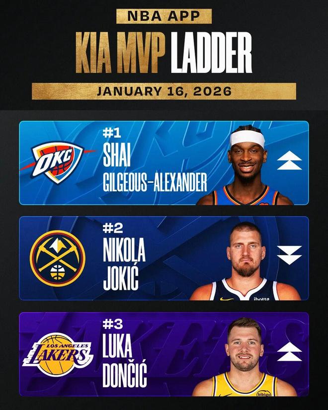 在保持了几乎一整个赛季的MVP第一后,约基奇还是被亚历山大反超了,原因也不难理解,因为膝盖反关节,他已经连续缺席了9场比赛,过去两周能坚持排在第一,已经是非常难得的一件事。