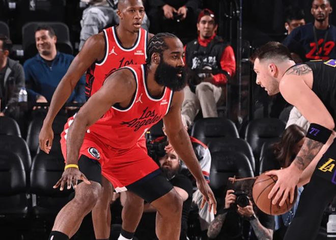 首发阵容方面,快船队这边, 伦纳德迎来复出,教练排出的最新首发五人组为:詹姆斯-哈登、克里斯-邓恩、科怀-伦纳德、约翰-科林斯、伊维察-祖巴茨;湖人队这边,里夫斯(左小腿拉伤)缺阵,首发阵容则为:卢卡-东契奇、马库斯-斯马特、杰克-拉拉维亚、勒布朗-詹姆斯、德安德烈-艾顿。