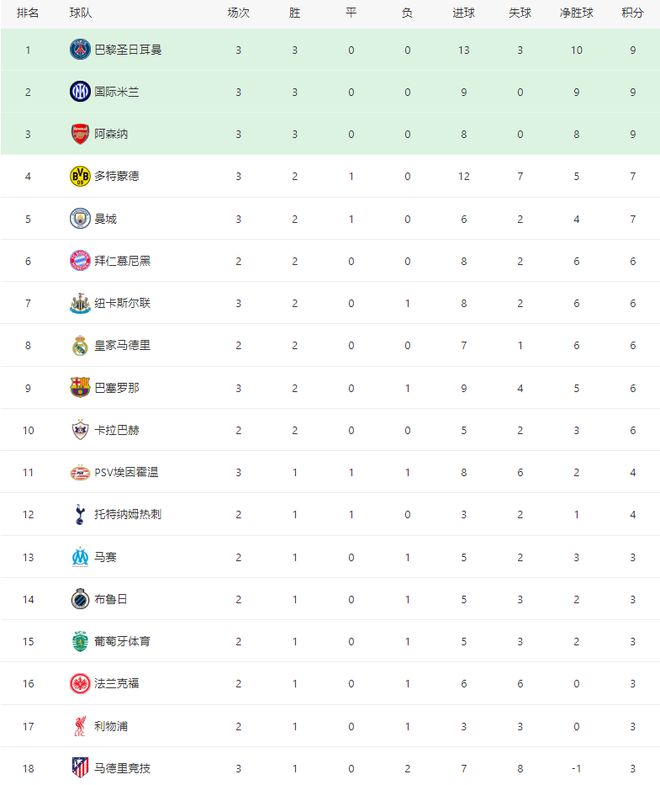 随着巴黎72+巴萨61,阿森纳40马竞,欧冠最新积分榜:榜首易主