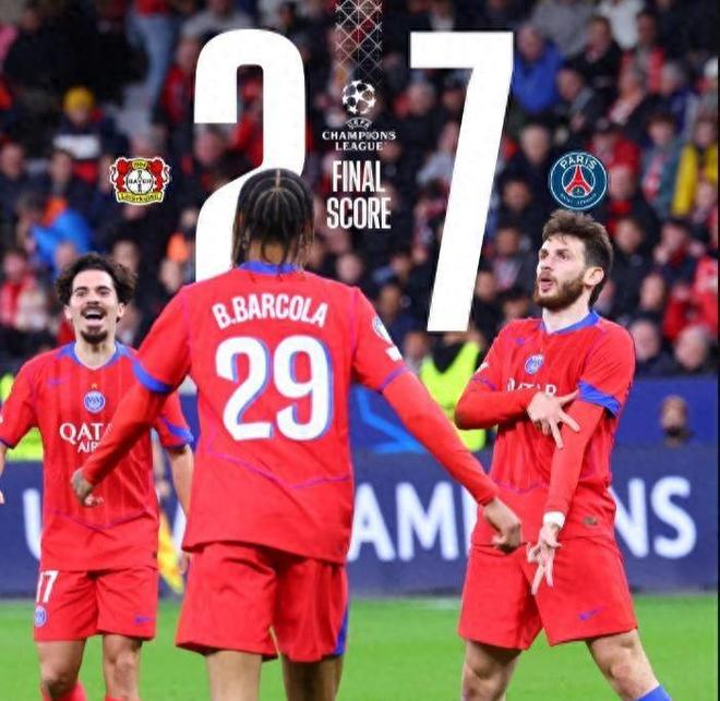 一场疯狂的对攻大战:巴黎7-2血洗勒沃库森北京时间10月22日凌晨,欧冠赛场上演了一场令人瞠目结舌的进球盛宴。巴黎圣日耳曼客场7-2狂胜勒沃库森,全场比赛共产生9粒进球,并伴随两