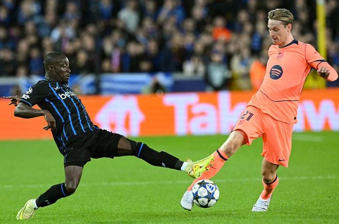 开场仅仅6分钟,巴萨防线被打穿,博尔赫斯助攻特雷索尔迪捅射破门,2分钟之后费兰帮助巴萨1-1快速扳平,随后第17分钟,布鲁日再度通过快速反击取得进球,博尔赫斯单刀推射破门,比分2-1领先。
