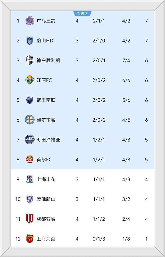 这个比赛日过后,中超两个球队的排名继续尴尬,成都蓉城积4分倒数第二,而上海海港仅积1分,依旧在东亚区垫底,武里南联队拿到第二场胜利,积6分排在东亚区第五。